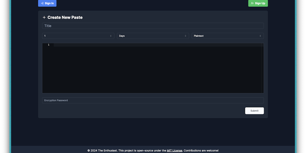✅ End-to-End Encryption for maximum privacy ✅ Customizable Expiration: Set self-destruct times ✅ Syntax Highlighting for multiple languages ✅ Private/Public Sharing options ✅ User Accounts for managin