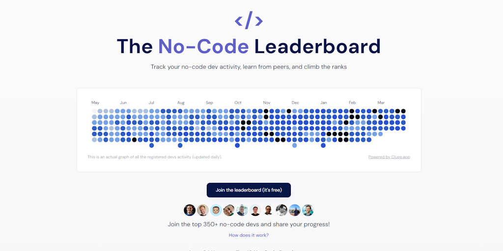 The No-Code Leaderboard - Track your no-code dev activity and climb the ranks | Product Hunt