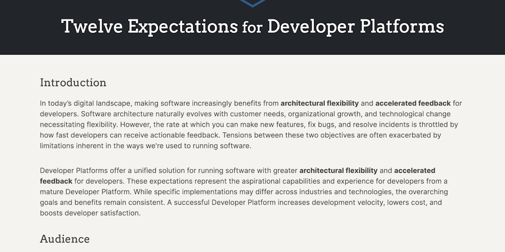 The Twelve Expectations - Unlocking software delivery by elevating Developer Platforms | Product Hunt