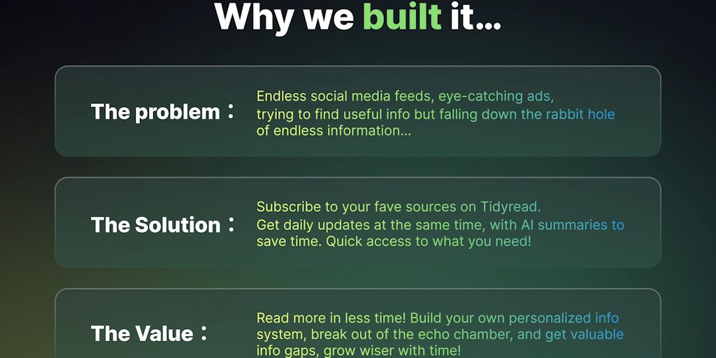 Use AI to automatically curate and summarize your feeds, providing a clean, concise digest at your chosen time.