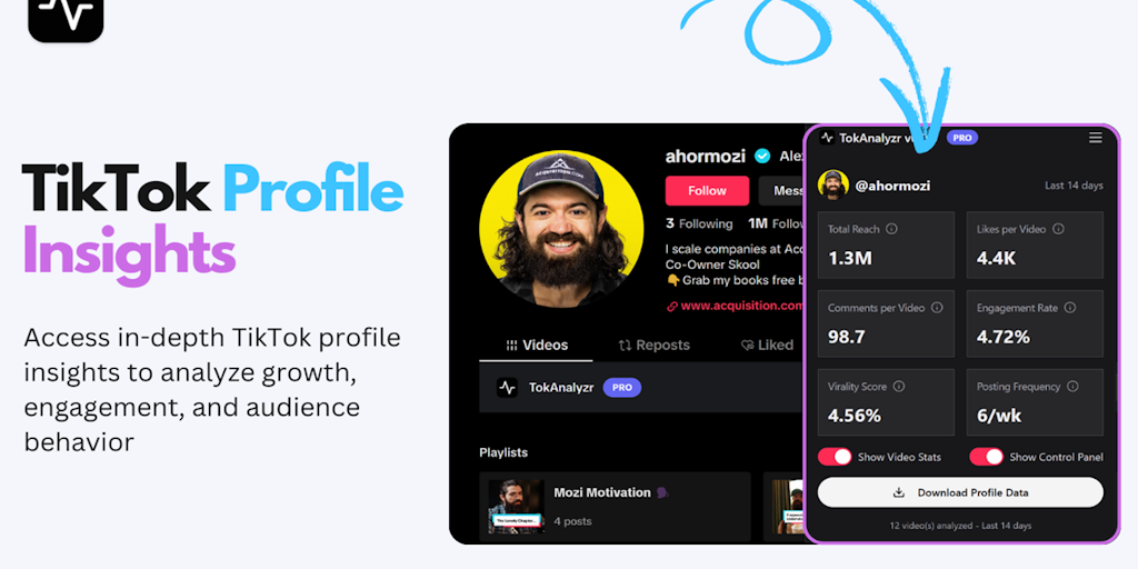 TokAnalyzr lets you instantly audit any TikTok profile, uncover key performance metrics like total reach, posting frequency & virality score. Analyze competitor content, spot trends, and see what work