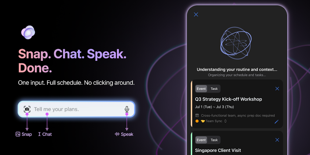 Hate planning? Same. That’s why Trace skips the forms and instantly builds your schedule from a message, voice, or screenshot. Plan without the pain—no more wasting time on what your calendar should d