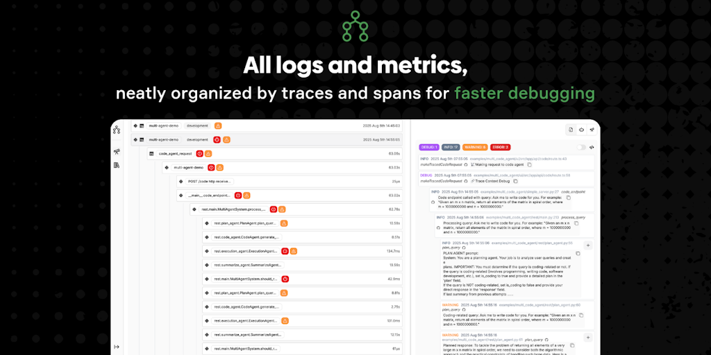Traceroot is an AI-native, open-source observability tool that connects logs, traces, metrics, code, and team discussions. It doesn’t just summarize issues — it helps fix them by creating GitHub issue