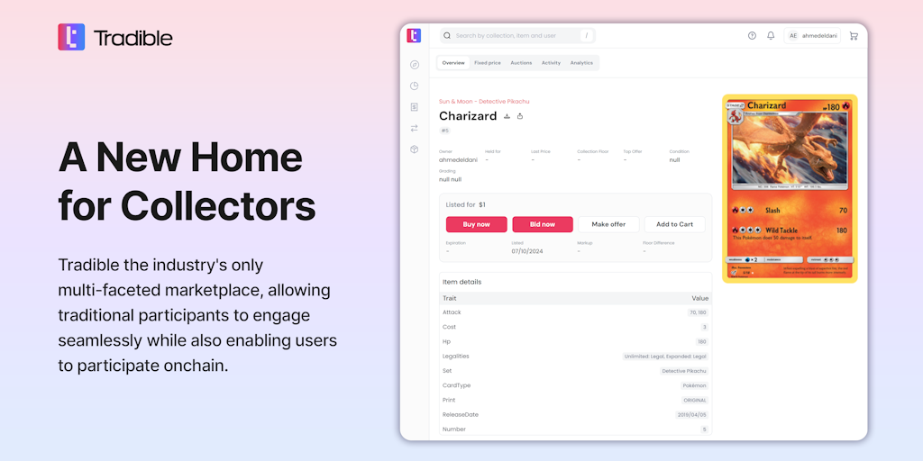Tradible redefines the trading card & collectibles marketplace by blending traditional collecting with advanced technology. Our platform offers asset tokenization, fractional ownership, instant liquid
