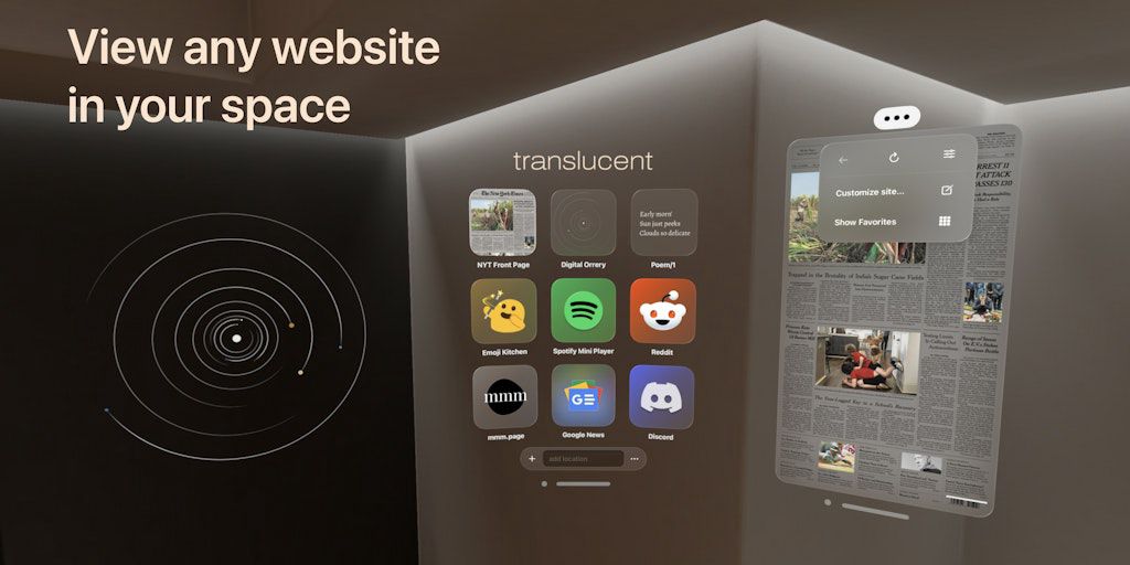 Translucent: Spatial Web Apps - Bring websites into your space — visionOS | Product Hunt