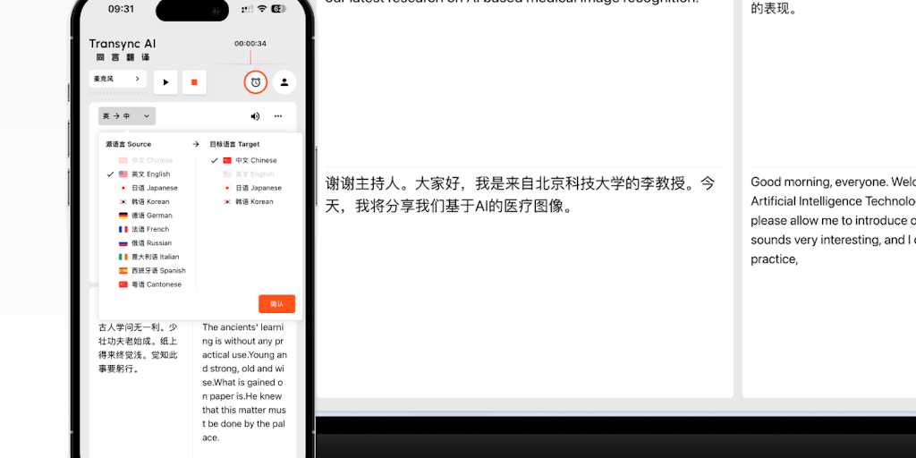 Transync AI is a multilingual meeting assistant using end-to-end voice models. It supports real-time two-way translation, voice playback in 60 languages, and AI-generated meeting summaries. Dual-scree