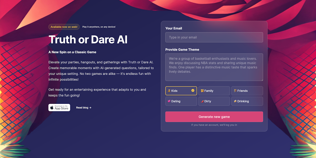 Truth or Dare AI - a game where every round is as unique as your imagination. The app creates endless streams of truth or dare prompts, all tailored to the context and keywords you provide, ensuring a