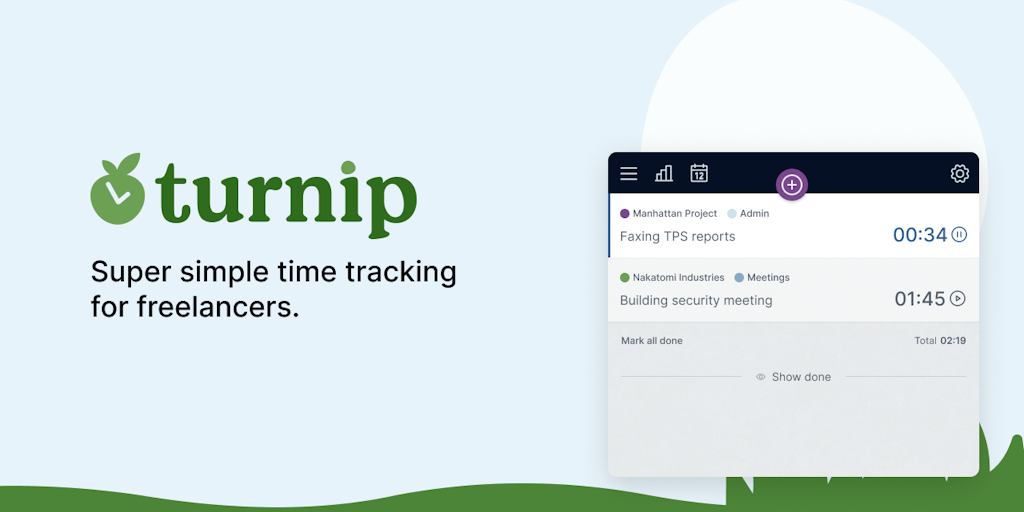 Reclaim your time with the time tracking app designed for freelancers and small businesses. Turnip makes it easy to track your time as you work, and automatically syncs with the services you already u