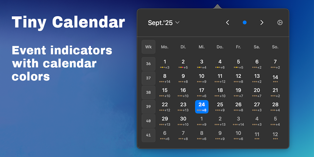 TyCal gives you a lightning-fast, read-only peek at your Apple Calendar — right from the menu bar. Stay on top of your schedule with a clean design, multiple views, and full privacy. No switching apps