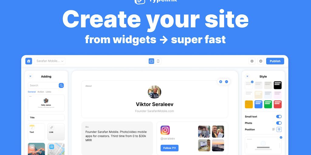 Unlock your creative potential with bento style no-code website builder. The ideal tool for creating portfolio, bio link and business page.
