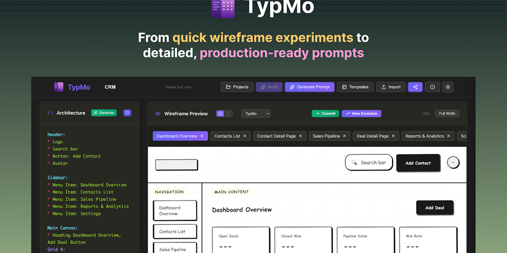 TypMo: Write wireframes. Generate prompts. Ship products. | Product Hunt