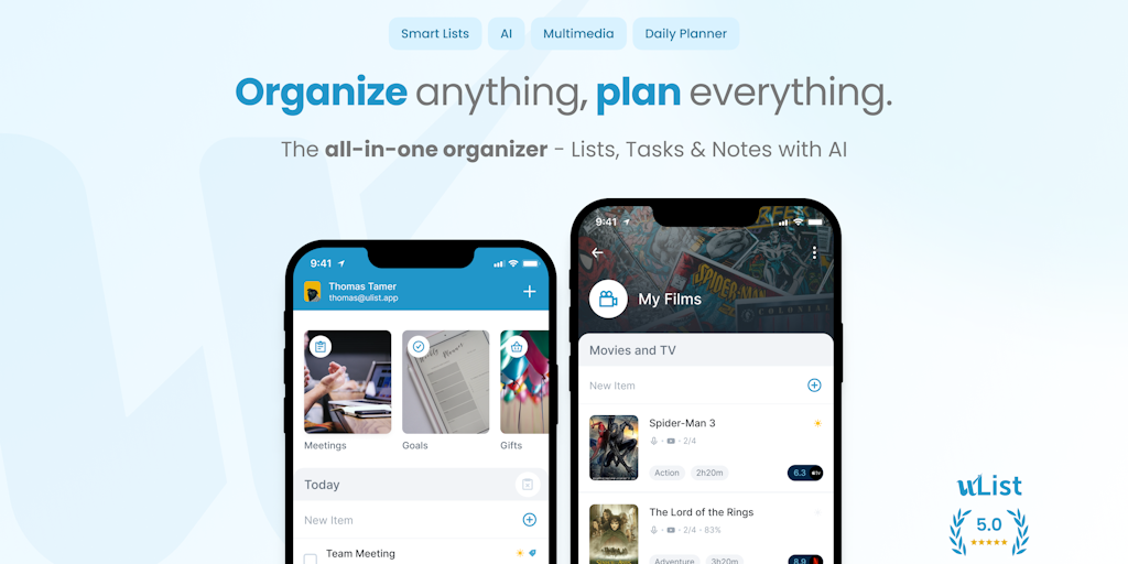 uList: Smart Lists - Organize Anything, Plan Everything. Tasks, Notes, Movies, AI | Product Hunt