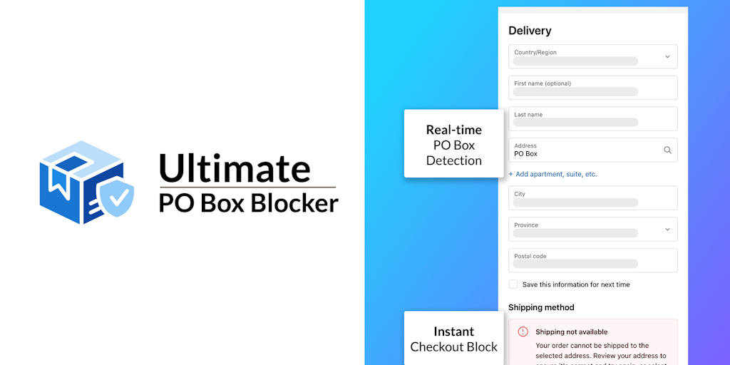 Ultimate PO Box Blocker for Shopify - Block PO Box addresses in real-time at Shopify checkout | Product Hunt