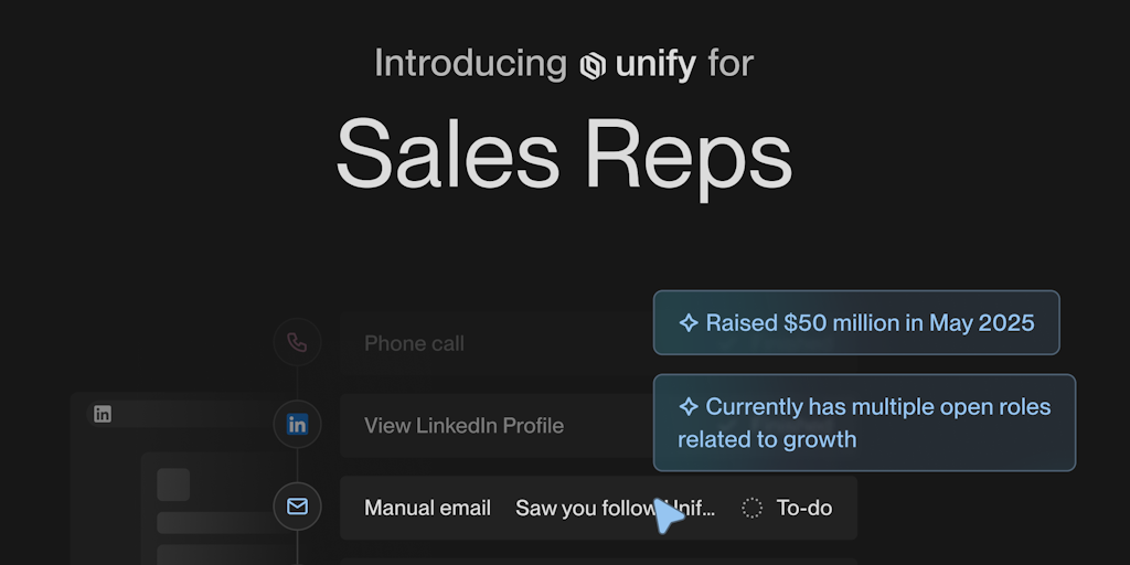 Unify is a system of action that helps you reach the right customer, at the right time, with the right message, at scale. The platform enables this through intelligent prospecting based on buyer signa