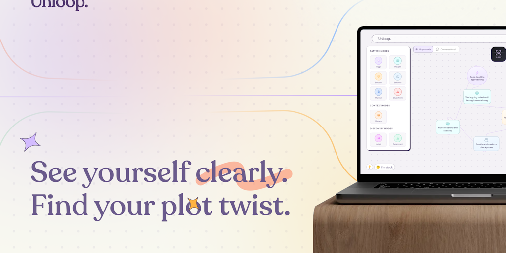 Unloop is a visual pattern mapping tool that helps you see the triggers, thoughts, emotions, and behaviors that keep you stuck. Map it out. Spot the loop. Let AI surface what you missed. Design tiny e
