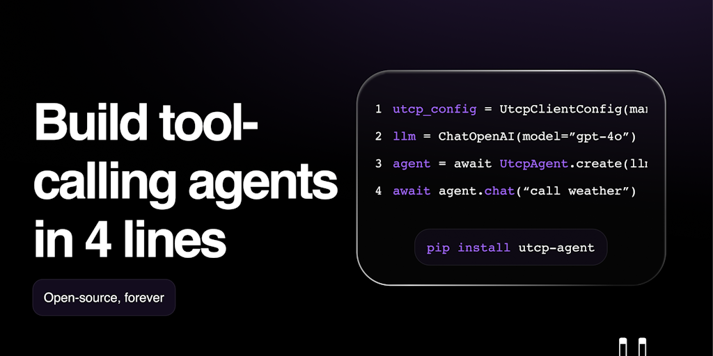 UTCP (Universal Tool Calling Protocol) is an open standard for AI agents to call tools directly, positioned as a lightweight alternative to MCP. It eliminates the "wrapper tax" for lower latency by us