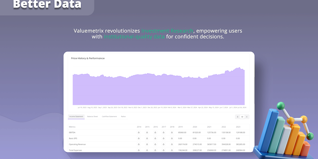 Valuemetrix helps investors make smarter decisions with real-time data, news, and AI-driven insights. Our AI chatbot simplifies complex information, giving you clear guidance for confident investing.