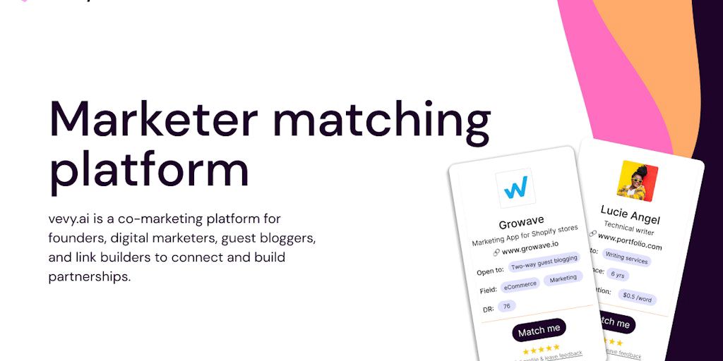 vevy.ai is a co-marketing platform for digital marketers and founders. List what kind of marketing collaboration you're looking for and get match for your marketing offers.