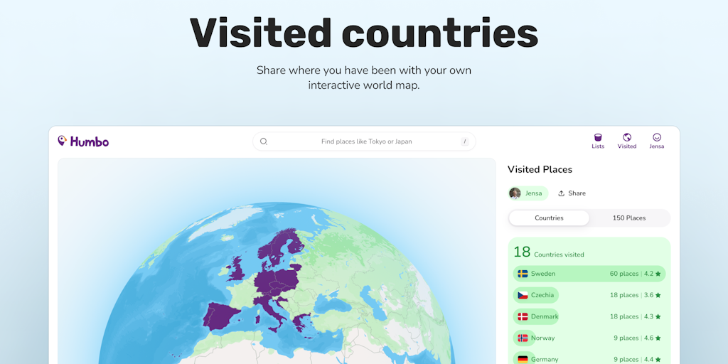 Visited by Humbo - Create an interactive map of your travels | Product Hunt