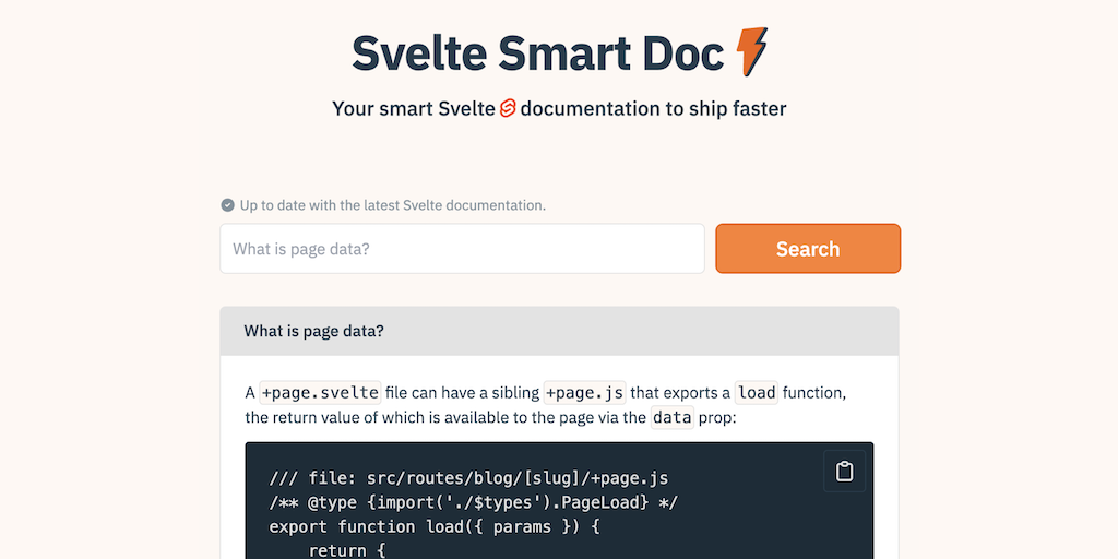 Sveltron is a documentation copilot for your Svelte and SvelteKit projects. It can answer all your questions with any context. Always feed by the latest official documentation available 🤘 For example,