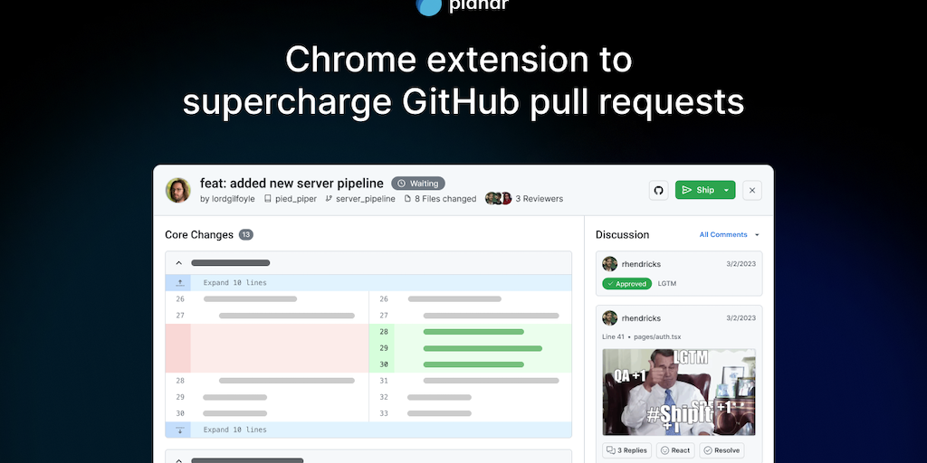 Planar is a chrome extension to supercharge code reviews in GitHub. It’s faster, easier, and more fun to use than GitHub’s native workflow.
