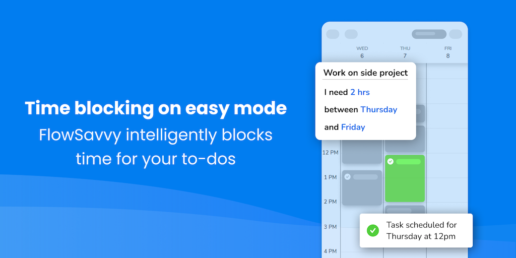 FlowSavvy intelligently schedules tasks from your to-do list into your calendar so you can see exactly what needs to get done and when. Integrates with Google Calendar and features fully functional iO
