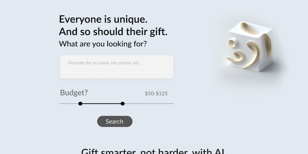 Giftl.io, a thoughtfully designed AI website that redefines the personalized gift-giving. Simply describe the recipient, and our intelligent algorithm will craft a curated selection. Find truly unique