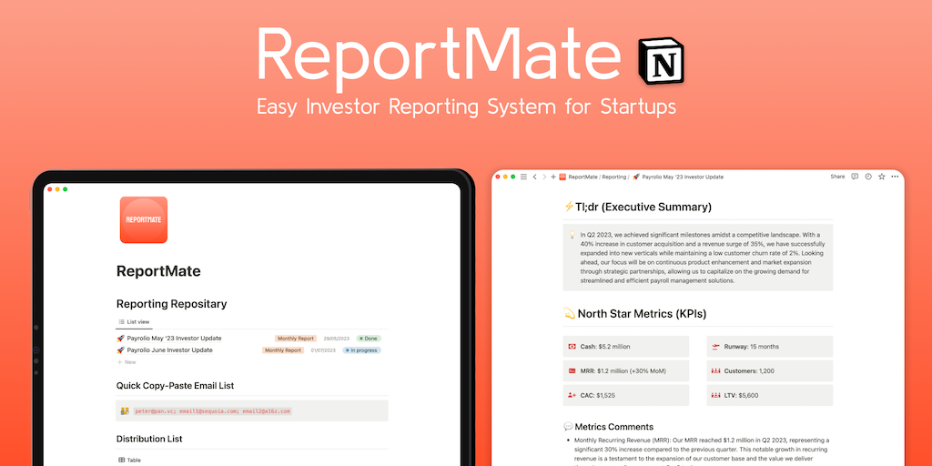 ReportMate - Notion template to write and manage investor updates | Product Hunt