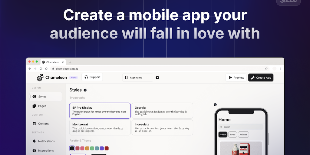 Sizze Chameleon - Your own customized app in a few clicks | Product Hunt