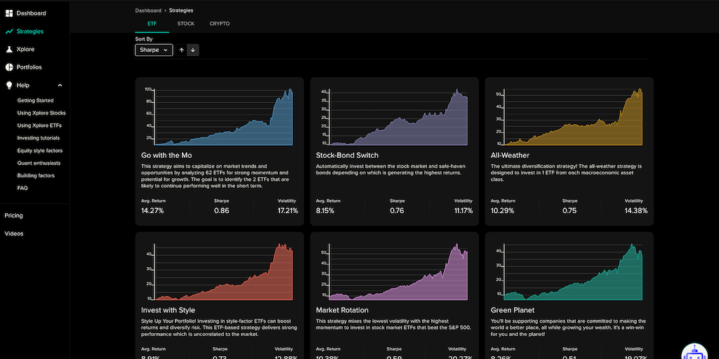STRATxAI is an AI investment platform with top-performing stock and ETF strategies. Build your own strategy using our no-code builder. Free masterclasses, webinars, and guides. Our AI chatbot SAM chat