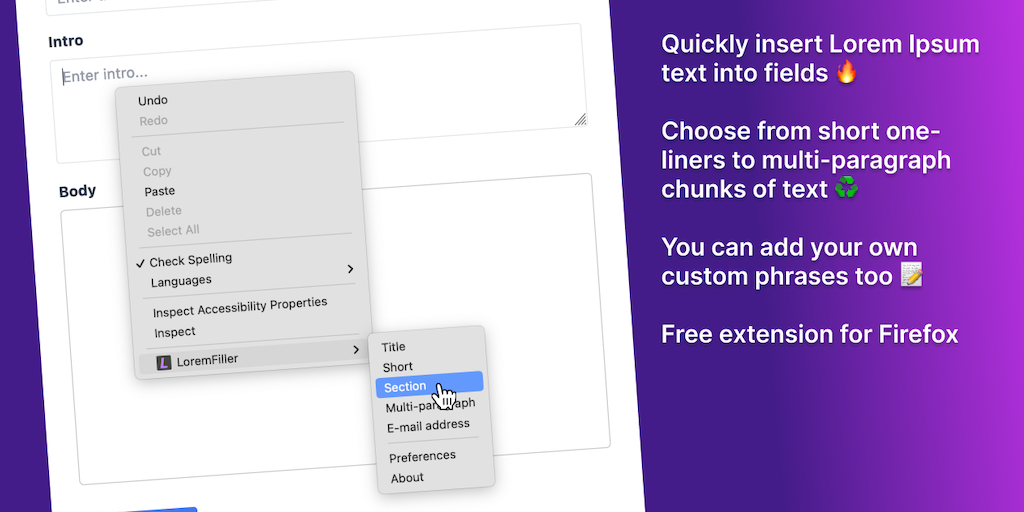LoremFiller - Quickly insert Lorem Ipsum text into text fields in Firefox | Product Hunt