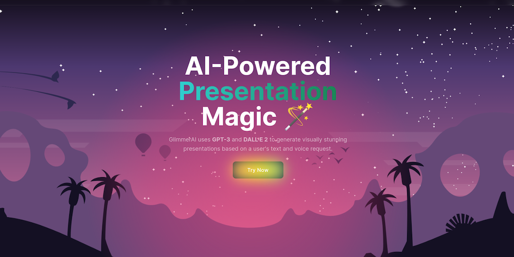 Glimmer is AI-based presentation generation tool that makes creating professional-quality presentations easy and fast using text or voice requests! Say goodbye to boring presentations and hello to stu