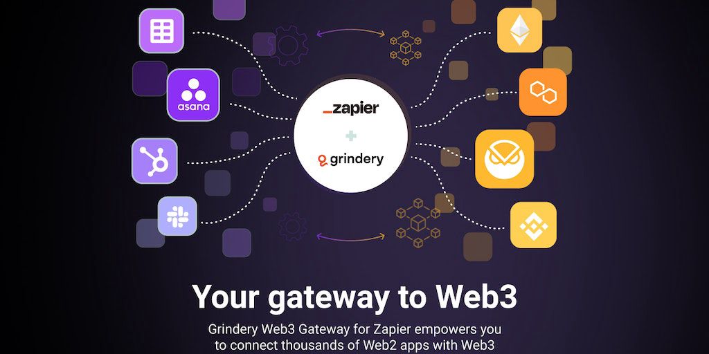 With the Grindery Web3 Gateway for Zapier, we unlock the power of Zapier for blockchain apps. You can automate workflows with no-code configuration that connect thousands of Web2 apps with Web3 dApps/