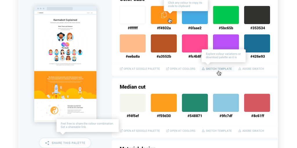 Site Palette is a Chrome extension for designers and developers to generate harmonious color palettes from websites. Secure, user-friendly, and compatible with design tools like Sketch, Figma and Adob