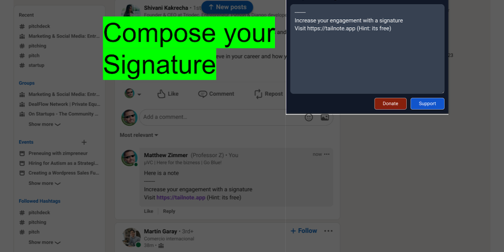 Tail Note - Add a signature to your LinkedIn comments and replies | Product Hunt