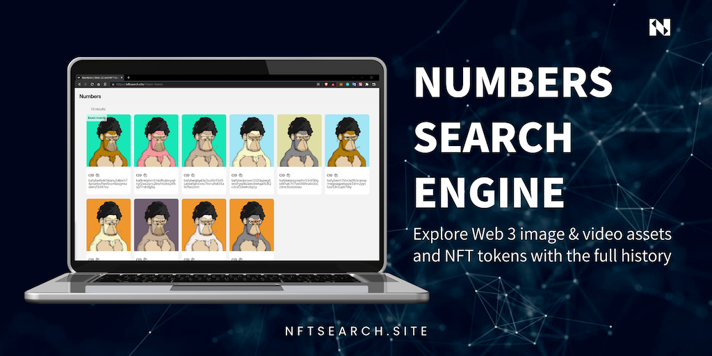 Numbers Search Engine is the Google for NFTs. Boasting the highest multi-network asset coverage, reverse-image search, dedicated asset profiles & AI-powered similar image results, any NFT info can be