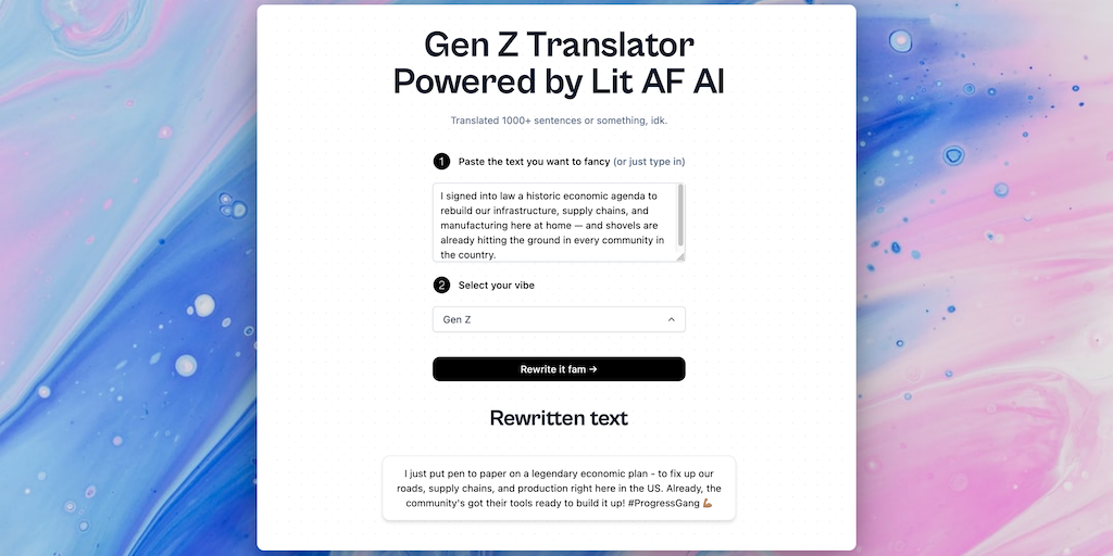 Gen Z Translator - Rewrite a sentence in Gen Z slang with the help of AI | Product Hunt