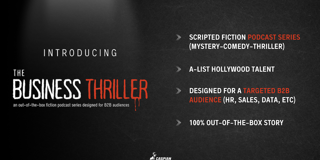 The Caspian Studios Business Thriller is a first-of-its-kind fiction podcast series designed to help B2B marketing teams engage their target audience with Hollywood-style storytelling.