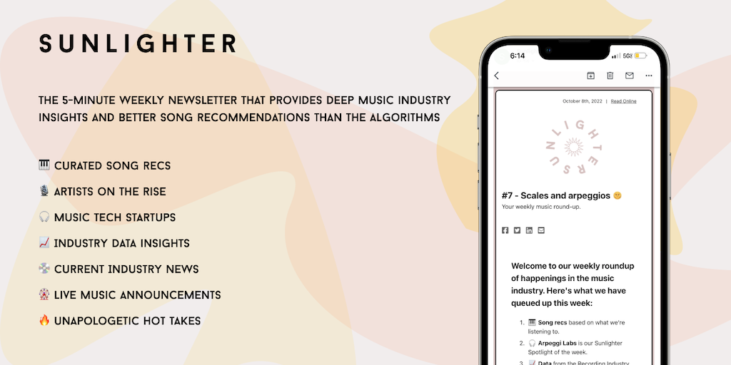 Sunlighter isn't your typical music newsletter. We focus on curating music recommendations and providing snippets of deep insights into the music industry so you can tell your friends, “I knew about t