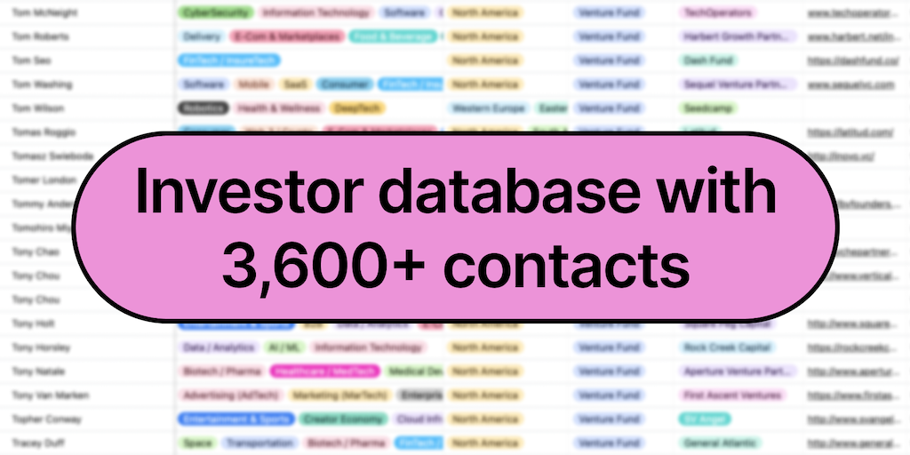 The most up-to-date Fundraising Kit. It comes with a Database of 3,600+ investors (VCs & Angel Investors), Email templates and Outreach guide.