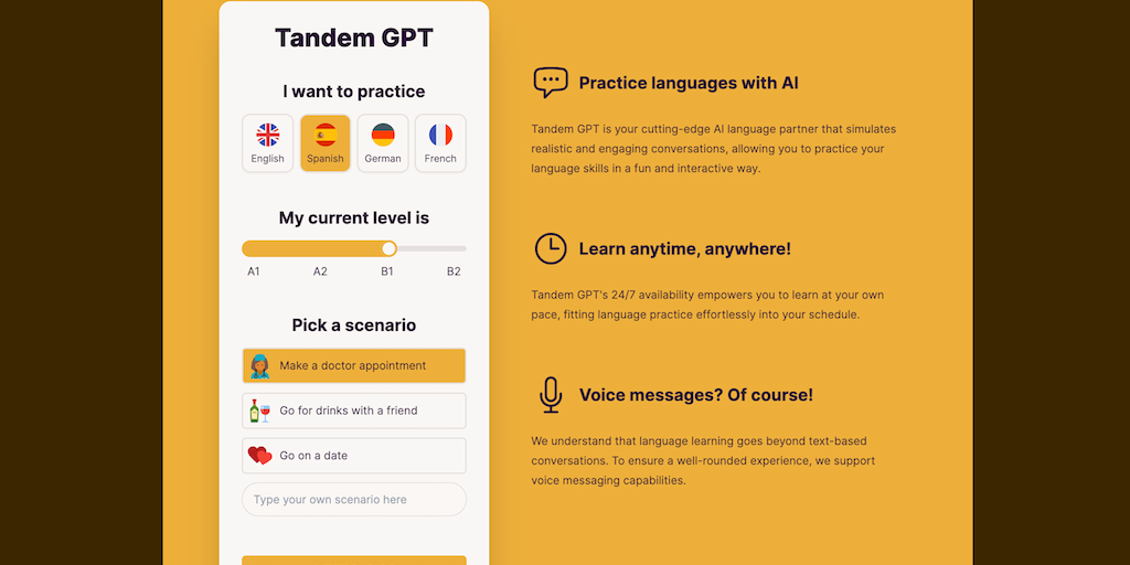 Tandem GPT - Practice languages with cutting-edge AI | Product Hunt