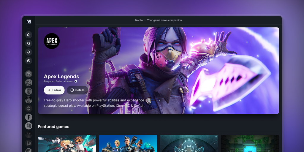 Nohto is a game news companion, designed for players and creators. Our mission is to create an efficient place to keep track of your favourites games.