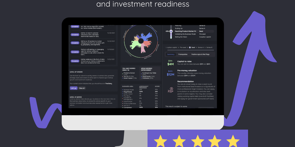 The first personalized self-service startup assessment & growth platform. Quickly identify your startup’s strengths, weaknesses, improvement opportunities and automate the process of building a custom