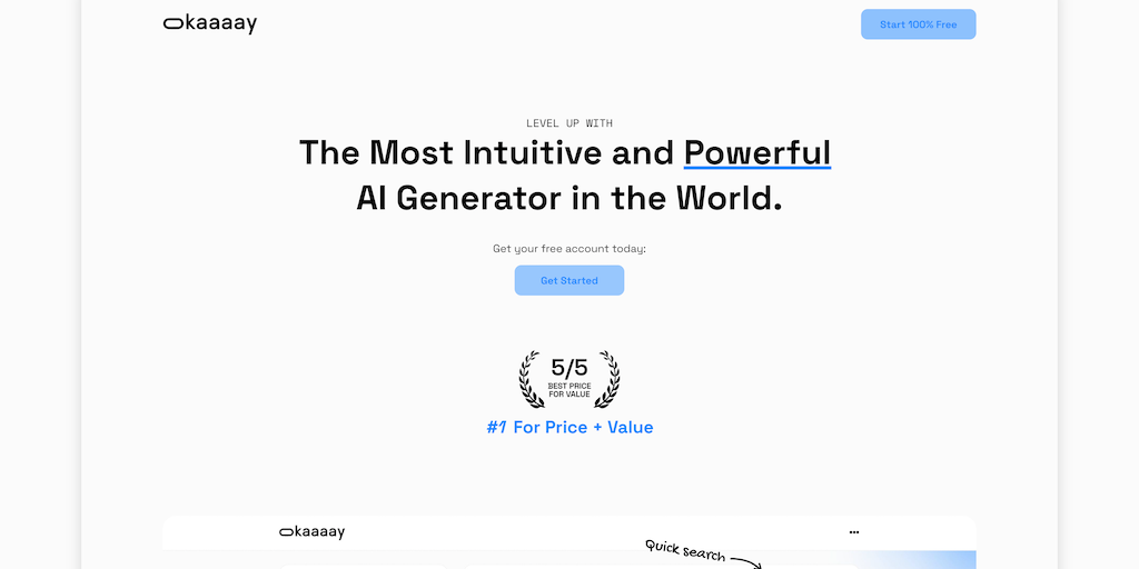 Streamline your content-creation process and take it to the next level with Okaaaay: The affordable-for-all AI text-and-content generator.