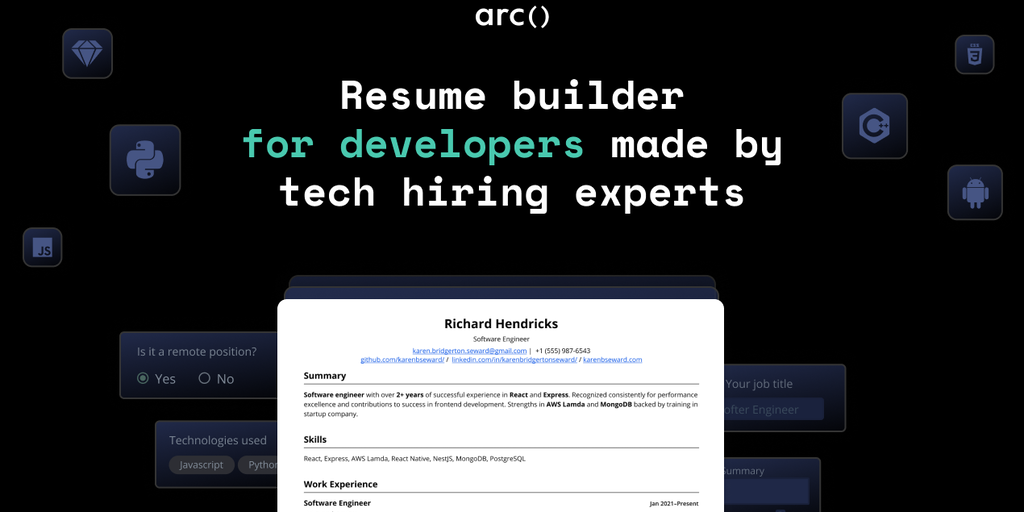 Resume Builder for Developers by Arc - Create or optimize your dev resume for free | Product Hunt