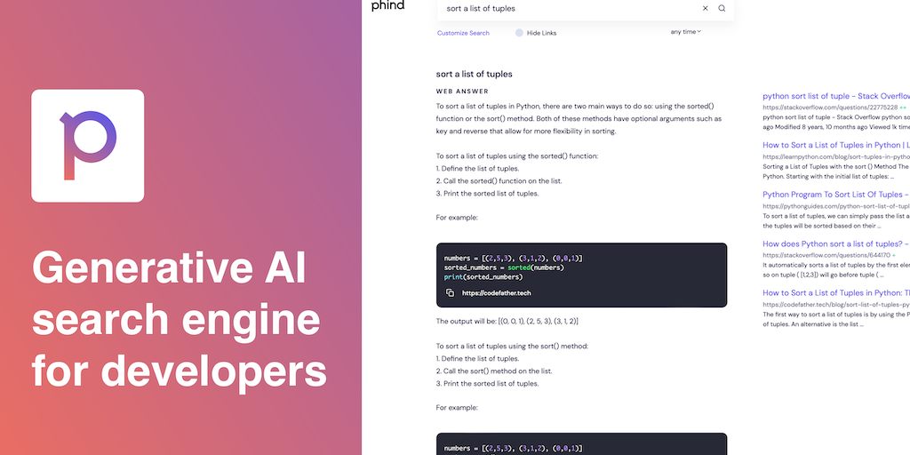 Phind.com - Generative AI Search Engine - The best of ChatGPT combined with the best of Google | Product Hunt
