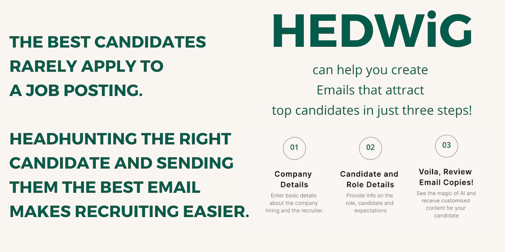 HEDWiG is a simple tool that assists recruiters in crafting effective and custom emails to potential candidates. Say goodbye to generic templates and hello to efficient and effective recruitment commu