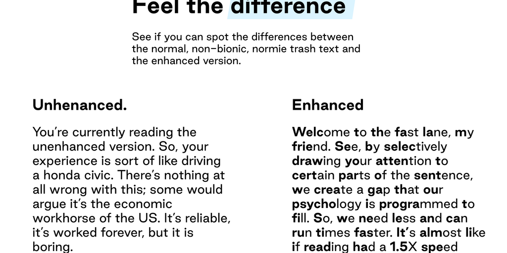 Jiffy Reader is a browser extension that allows you to read any website faster. We do this by selectively bolding certain parts of some words since the bottleneck while reading is your eyes, not your