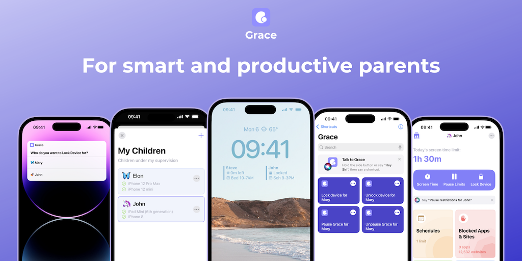 Track your child’s screen time remotely from your lock screen. Automate limits in one tap with Shortcuts. Get Grace, a one-of-a-kind parental control app for iOS: privacy-focused and simple to use.