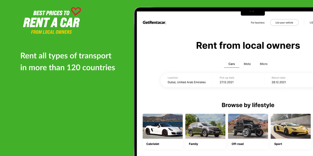 GetRentacar.com first machine learning rent a car from local owners marketplace providing best discounts to clients. Don't waste your time on finding good terms and asking for discounts - we do this f